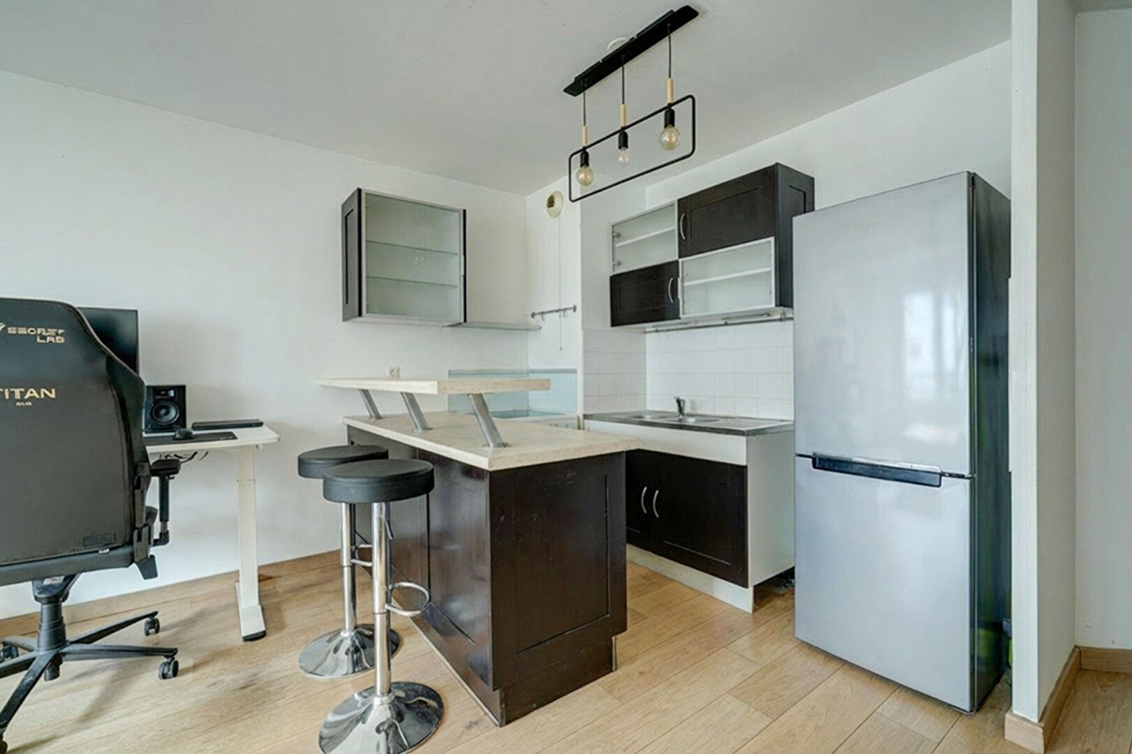 – Grande pièce de vie avec cuisine ouverte.