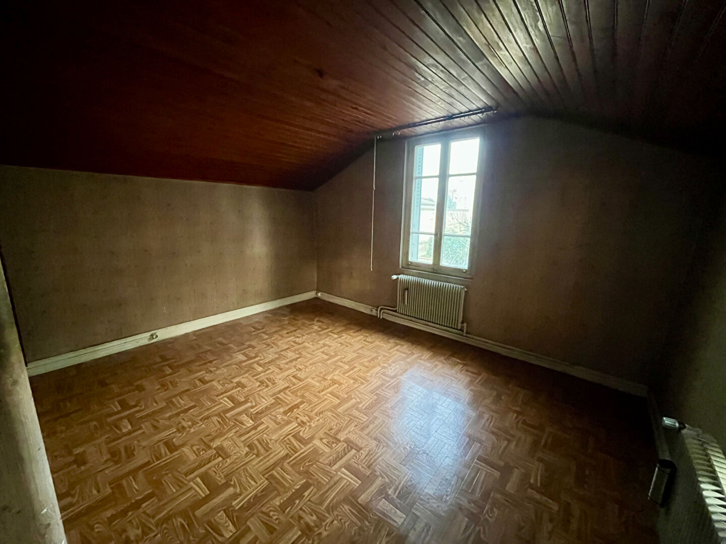 Ce bien se présente sous forme de plateau à aménager, offrant une liberté totale pour créer votre logement idéal. En retrait de la rue, au coeur d’un environnement très peu passant, il bénéficie de volumes généreux et de grandes ouvertures, caractéristiques des constructions des années 40. La configuration actuelle permet de concevoir une pièce de vie avec cuisine ouverte, WC et rangements au rez-de-chaussée, ainsi que deux chambres et une salle d’eau à l’étage, avec les évacuations prévues pour les sanitaires.
